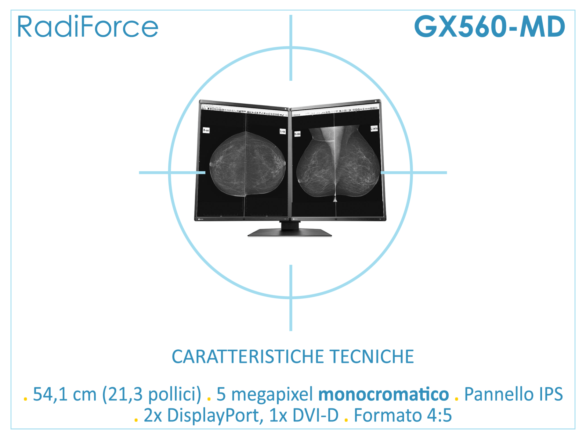 Grazie alla risoluzione di 2x 5 MP, la soluzione GX560 MammoDuo garantisce l'altissimo livello di sensibilità diagnostica richiesto
